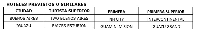 IMPORTANTE: En caso de tener Pasajeros “NO SHOW“ el gasto de cancelación o el alojamiento no utilizado NO TIENE DEVOLUCION DE IVA , deberá pagar el impuesto del 21% , los hoteles Facturaran.