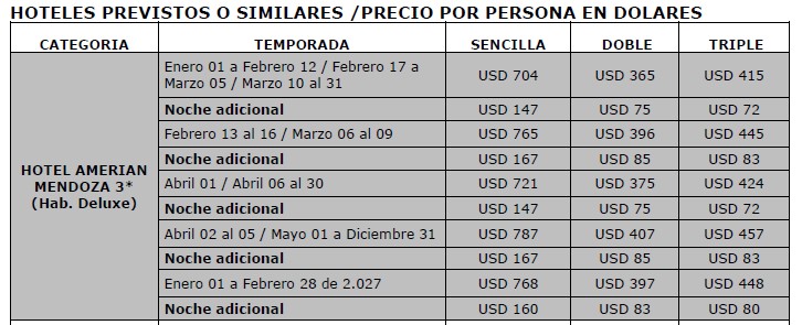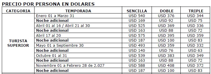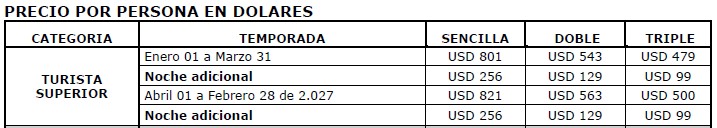 TARIFAS VALIDAS PARA PASAJEROS EXTRANJEROS