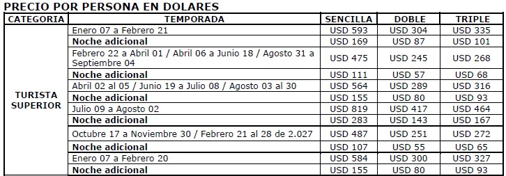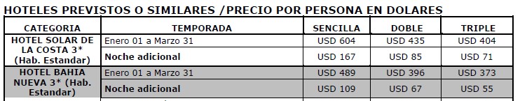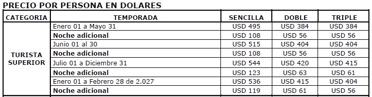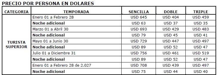 DEPOSITO: Se requiere un 30% del valor para reservar y el saldo 30 días antes de la salida.