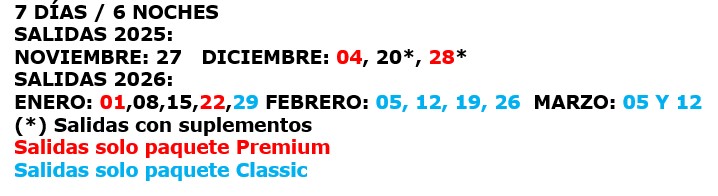 PRECIO POR PERSONA EN DÓLARES: Validez 2025- 2026