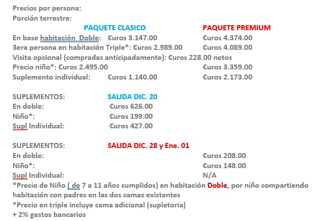 PRECIO POR PERSONA EN DÓLARES: Validez 2025- 2026