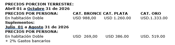 PRECIO POR PERSONA EN DÓLARES: