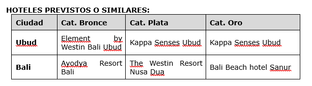 Hoteles Previstos o similares