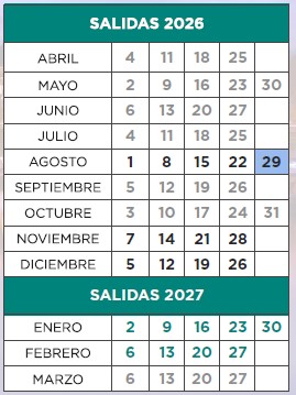 Fechas de salida: