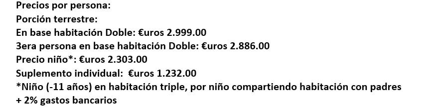 Llamamos la atención que los traslados regulares incluidos en el programa, son disponibles solamente desde los aeropuerto mencionados, y son válidos exclusivamente para las fechas publicadas de comienzo y final del circuito.