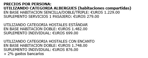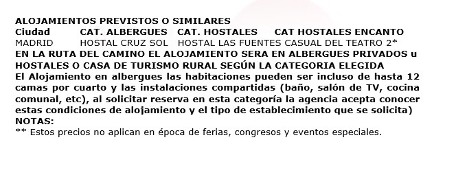 El precio incluye en el recorrido del Camino de Santiago: