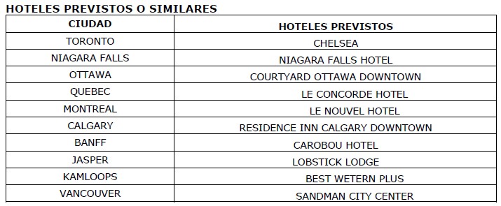 Las visitas de Toronto, Niagara, Ottawa, Quebec, Montreal, Calgary, Banff y Jasper, Kamloops y Vancouver son comentadas por su guía acompañante o por un guía local.