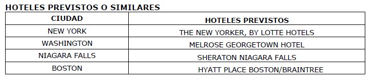 * Traslados para EWR aumentar por persona por via según acomodación: DBL Y TWIN USD 17,00, en TPL USD 15,00 EN CUAD USD 11,00 EN SGL, 35,00 Y NIÑO USD 13,00.