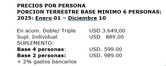 – En general ningún servicio que no este claramente estipulado en el presente itinerario