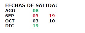 – Pago total 60 días antes de la salida.