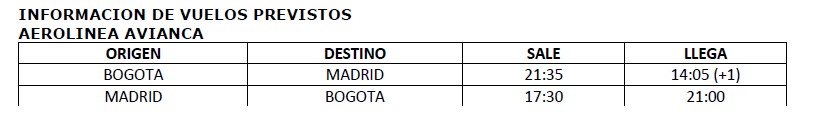 – Tiquete con AVIANCA desde Bogotá, con impuestos incluidos.
