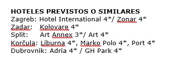 – En general ningún servicio que no este claramente indicado en el itinerario