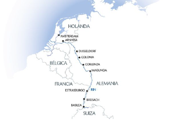 El Rhin nace en Suiza, desemboca en Holanda, y atraviesa, o más bien bordea, Francia, sin embargo es un rio esencialmente alemán. Rhin deriva de una palabra Celta que significa”corriente” y para ellos que habitaron esta zona era el protector de la honra y la pureza domestica. Los Celtas se fueron desplazando hacia la orilla izquierda mientras los Germanos, nombre celta que significa “vecinos”, se instalaron en la orilla derecha, así a lo largo de la historia este rio ha servido de frontera natural, además de una gran via de comunicación entre los pueblos que habitan sus orillas y el resto de Europa. El Rhin nace en Suiza, desemboca en Holanda, y atraviesa, o más bien bordea, Francia, sin embargo es un rio esencialmente alemán. Rhin deriva de una palabra Celta que significa”corriente” y para ellos que habitaron esta zona era el protector de la honra y la pureza domestica. Los Celtas se fueron desplazando hacia la orilla izquierda mientras los Germanos, nombre celta que significa “vecinos”, se instalaron en la orilla derecha, así a lo largo de la historia este rio ha servido de frontera natural, además de una gran via de comunicación entre los pueblos que habitan sus orillas y el resto de Europa.