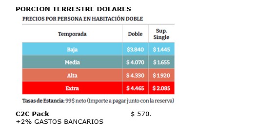 – Visitas mencionadas como incluidas en el C2C PACK (es válido si se agrega a la reserva desde el país de origen)