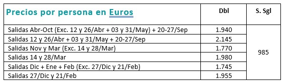 VIGENCIA La vigencia del programa/folleto será del 01 de abril de 2025 al 31 de marzo de 2026, excepto en aquellos viajes en los que se indique comienzo o fin en fecha diferente.