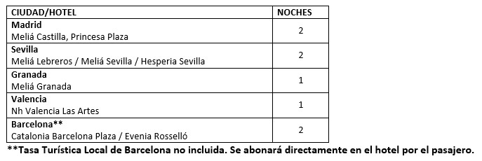 • Es posible que el hotel de la segunda estancia en Madrid no sea el mismo que en la primera estancia.