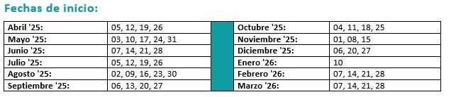 Salidas desde Abril 05 de 2025 a Marzo 28 de 2026
