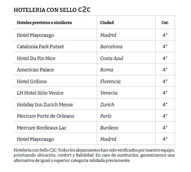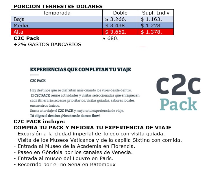 – Visitas mencionadas como incluidas en el C2C PACK (es válido si se agrega a la reserva desde el país de origen)