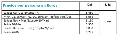 VIGENCIA La vigencia del programa/folleto será del 01 de abril de 2025 al 31 de marzo de 2026, excepto en aquellos viajes en los que se indique comienzo o fin en fecha diferente.
