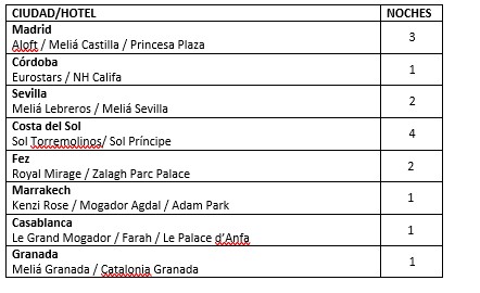 • Es posible que el hotel de la segunda estancia en Madrid no sea el mismo que en la primera estancia.