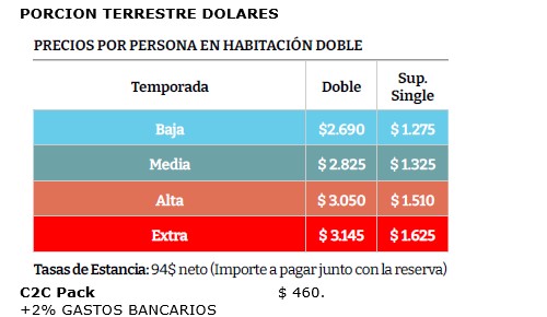 – Visitas mencionadas como incluidas en el C2C PACK (es válido si se agrega a la reserva desde el país de origen)