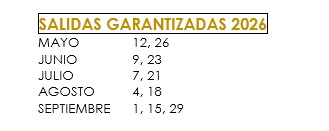 TODOS LOS SERVICIOS SOLICITADOS DEBERAN SER PAGADOS EN SU TOTALIDAD, AL MENOS CON DIEZ DIAS DE ANTELACION AL INICIO DE LOS MISMOS. EL NO CUMPLIMIENTO DE ESTE IMPORTANTISIMO REQUISITO, FACULTA TOTALMENTE AL ORGANIZADOR A LA NO ACEPTACION DEL PASAJERO EN EL MOMENTO DE SU PRESENTACION. TODOS LOS PAGOS DEBERAN SER