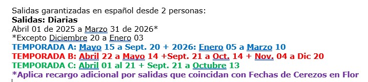 • Este paquete de Japón NO ES UN TOUR son servicios individuales sin guianza durante los tiempos libres y en los transportes en tren