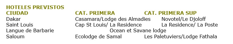 – En general ningún servicio que no esté claramente indicado en el itinerario