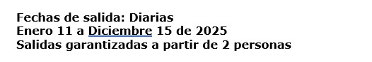 Para realizar reservas en firme se requiere un depósito del 30% del valor total de la cotización por persona y cuyo valor será abonado al pago total.