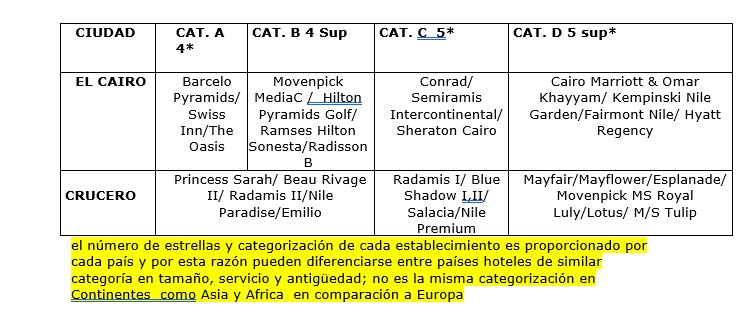 – 05 Noches de hotel en El Cairo según categoría en régimen de alojamiento y desayuno.