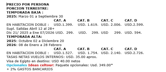 *Las dos estancias en El Cairo según el día de llegada se ajustan**