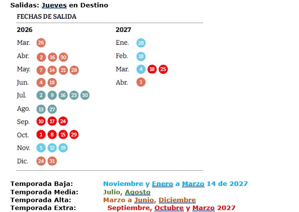 Salidas desde Marzo 26 de 2026 a Marzo 25 de 2027