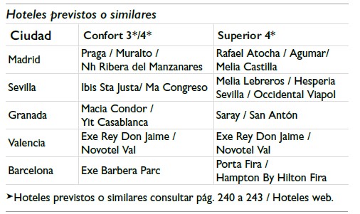 • En general ningún servicio que no esté claramente especificado en el presente itinerario.