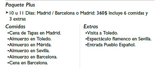 • Visitas y comidas mencionadas como incluidas en el Paquete plus (costo adicional).