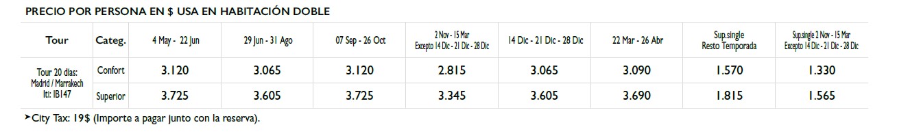 20 Días: Madrid / Marrakech: Incluye 13 Comidas y 4 extras