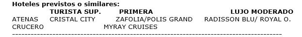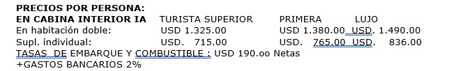En general ningún servicio que no esté claramente estipulado en el presente itinerario