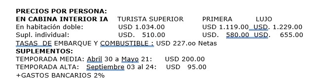 **Precios sujetos a cambio sin previo aviso por diferentes variables por lo cual se deben tomar como precios ilustrativos **