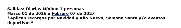 Salidas Diarias de Marzo 01 de 2026 a Febrero 07 de 2027