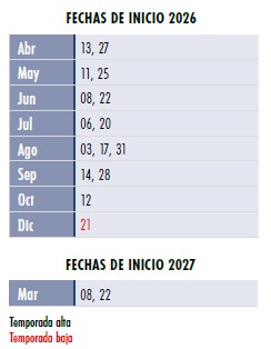 Salidas desde Abril 13 de 2026 a Marzo 22 de 2027