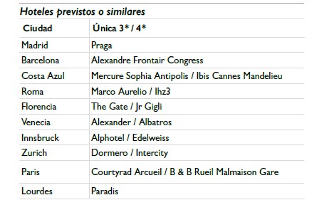 Alojamiento y desayuno en hoteles de categoría indicada.