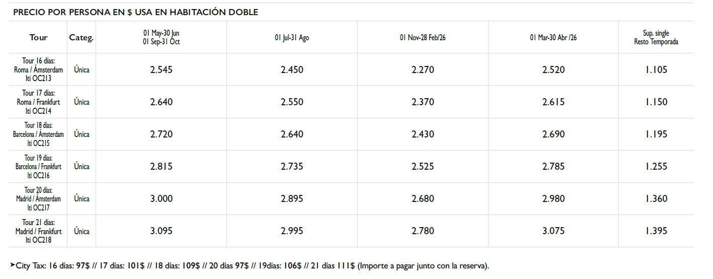El precio del viaje ha sido calculado en base a los tipos de cambio, tarifas de transporte, costes del carburante y tasas e impuestos aplicables en la fecha de edición del programa o de las posteriores que, en su caso, se hayan hecho públicas de forma impresa.