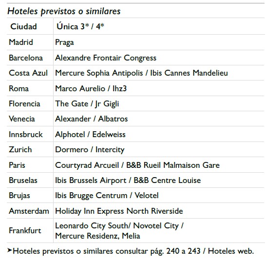 Alojamiento y desayuno en hoteles de categoría indicada.