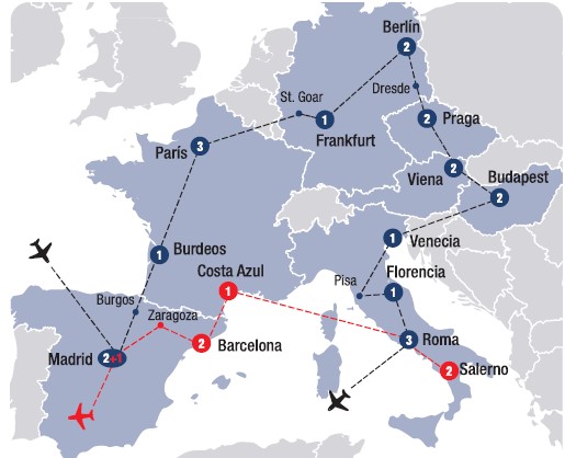 Les ofrecemos la posibilidad de ampliar su viaje desde Roma hasta Madrid pasando por la Costa Azul y Barcelona Consulte itinerario descriptivo