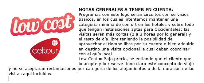 La organización de estos viajes combinados ha sido realizado por VIAJES CELTOUR operador mayorista con Registro Nacional de Turismo 3487, y/o sus operadores locales, se hace responsable ante los usuarios por la total prestación de servicios descritos en el presente folleto