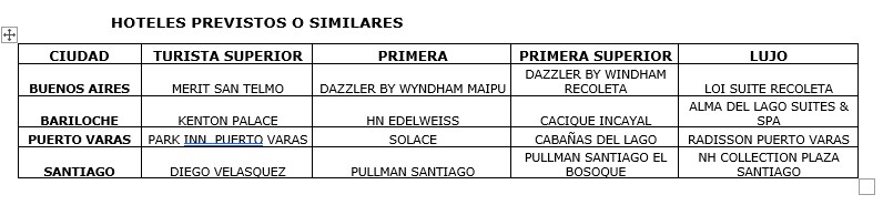 * Traslados en servicio privado en Buenos Aires y Santiago, resto de ciudades en servicio regular