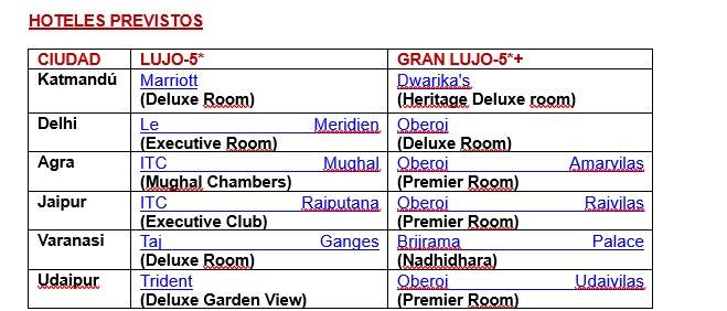 Alojamiento de 08 Noches en los hoteles mencionados o similares