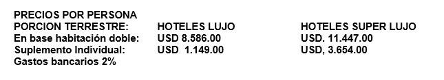 PRECIO POR PERSONA EN DÓLARES: