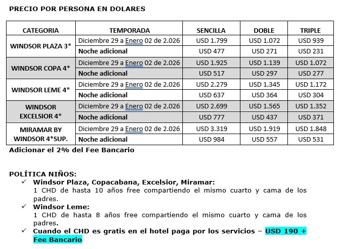 DIC 29 RIO DE JANEIRO (Vuelo no incluido)