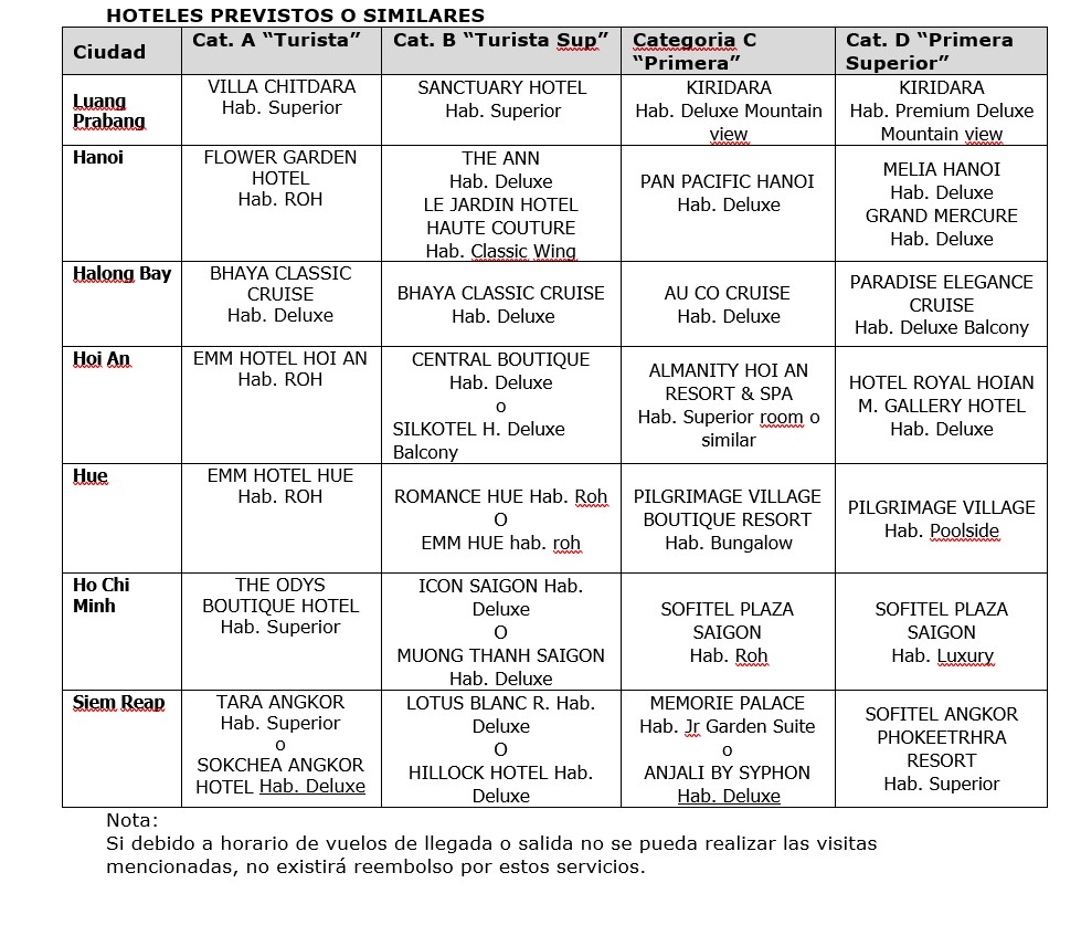 Tiquetes aéreos internacionales Luang Prabang/Hanoi & Ho Chi Minh/Siem Reap en clase turista