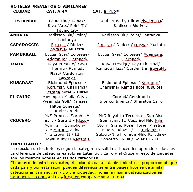 EL PROGRAMA EN TURQUIA INCLUYE :